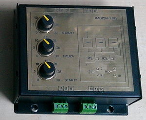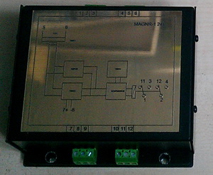 Specijalno konstruisano rele za kontrolu iskljucenja startera i prekoracenja broja obrtaja na elektro agregatima koristeci izlazni napon generatora.